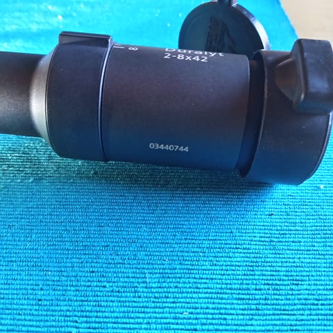Kuvan mukainen tähtäinkiikari. Toimiva laite. Putkessa pikku kauneusvirhe, sotilaskiväärin lukonkampi kulutti pinnoitetta mutta ei vaikuta käyttöön.