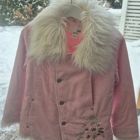 Siisti käytetty HM:n talvitakki, 116. Enempi kyllä jo kevyttoppatakki kuin talvitakki. 5e +pkt