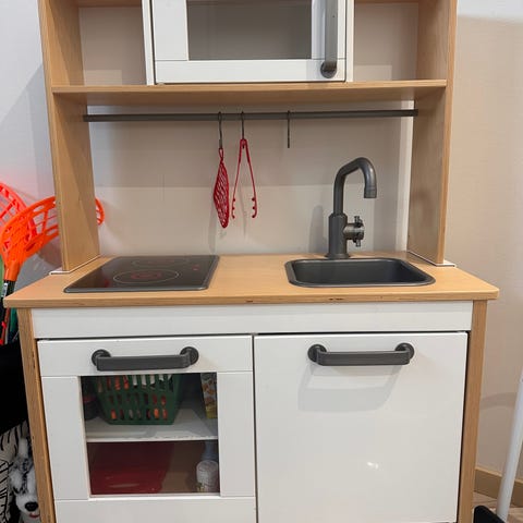 Hyväkuntoinen lastenkeittiö. Ei kolhuja, naarmuja, tarroja tai piirrustuksia.