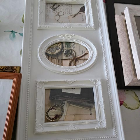 Tyylikäs hopeansävyinen kehys ruusukoristeilla