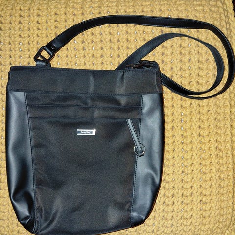 Salkussa lokeroita moneen lähtöön. Säädettävä olkahihna.