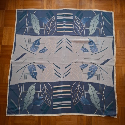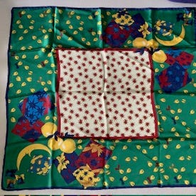 100 % satiini silkki ,ei rypisty ,kevään väreissä. koko 86 x 86 cm .Ei käytetty. HINTA SISÄLTÄÄ KIRJEMAKSUN.