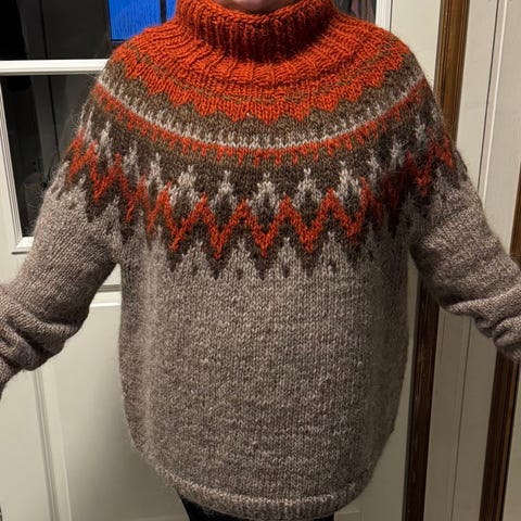 Minun neuloma paita mikä oli miehelle liian iso ja siksi myyn. Lankana käytetty laadukasta double sunday lankaa. Langat maksaneet 170€ tähän työhön. Myynnissä myös muualla