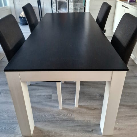 Myydään hyvässä kunnossa oleva Pohjanmaan Kalusteen akaasiapuinen 4 hengen ruokailuryhmä. Pöydän korkeus 90 cm, leveys 120 cm ja syvyys 70 cm.