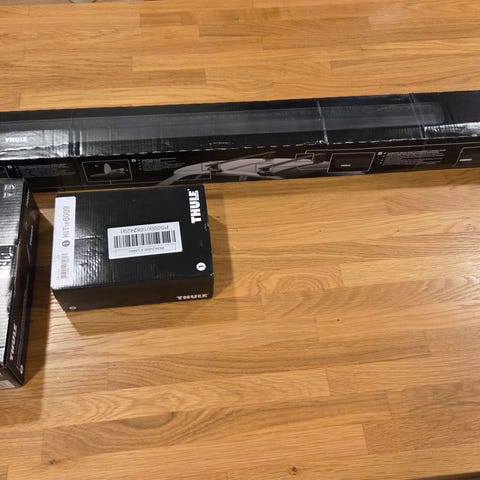 Erittäin hyväkuntoiset ja siistit Thulen telineet kattokaiteelliseen autoon.