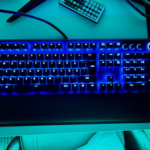 Razer BlackWidow -näppäimistö, täysikokoinen malli numeronäppäimistöllä. Johdollinen USB-näppäimistö, musta väri. Sopii yleiskäyttöön tietokoneen kanssa, esimerkiksi pelaamiseen ja työskentelyyn.