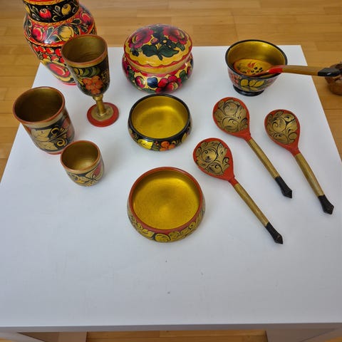 Vanha venäläinen käsinmaalattu tarjoilusetti