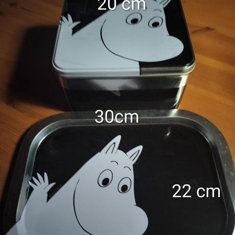 hakusanoja: teepurkki kahvipurkki purkki säilytyspurkki peltipurkki muumi muumit keräily retro vintage tarjotin peltitarjotin