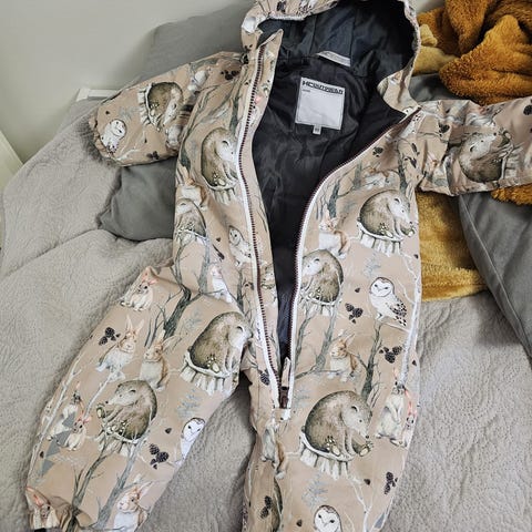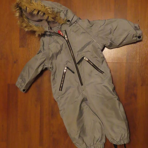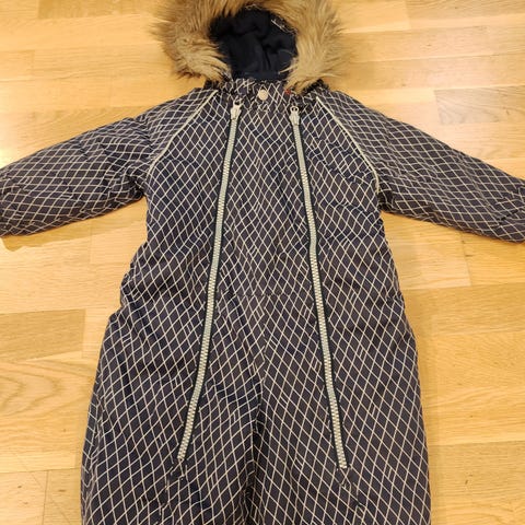 Ehkä, käytetty, lämmin talvihaalari, saumoissa jo jonkin verran kulumaa.