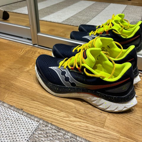 Noin 170 km juostut Endorphin Speedit. Tämä on sitä alkupään Endo Speediä, joka oli vielä enemmän vauhdikkaampaan juoksuun suunnattu. Nämäkin olen ostanut aikaan, kun ostin liian pieniä kenkiä. Siksipä jääneet vähille kilsoille. Nouto Hollolasta (kulkeutuvat toisinaan tarvittaessa Helsinkiin) tai postitus.