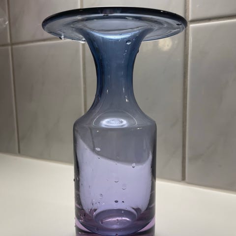 Tapio Wirkkalan Iittalalle suunnittelema sininen maljakko 2727 1960-luvulta. Korkeus 24cm. Maljakko on signeerattu.