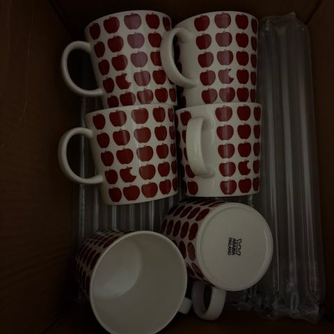 Muuten virheettömiä, mutta yhden mukin alareunassa on pieni riksuyhteisibta 90€.