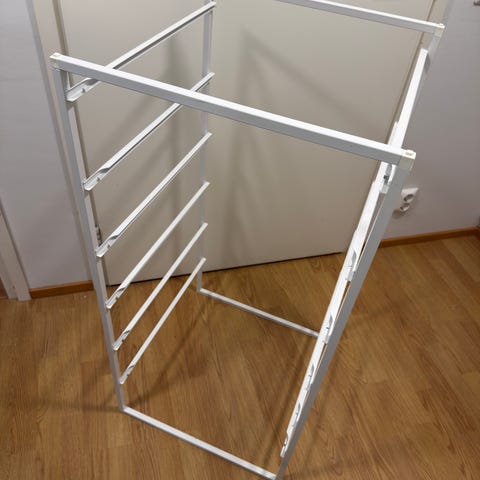 Ikea jonaxen metallinen säilytyshylly, jossa neljä vedettävää koria. Itsellä jäänyt käyttämättömäksi. Mitat ja lisätietoja: https://www.ikea.com/fi/fi/p/jonaxel-saeilytyskokonaisuus-valkoinen-s89297130/