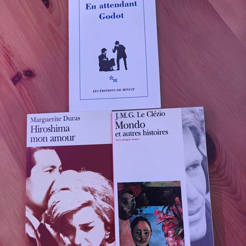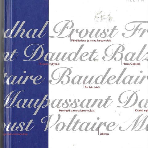 Upeita ranskan ja englanninkielisiä kirjoja. Osa luettuja, osa lukemattomia. Kaikki hyvässä lukukunnossa. Myyn kirjojani mielellään kirjallisuutta ja lukemista rakastavalle ennemmin kuin jälleenmyyjille/ keräilijöille. Kuvan kirjakokoelmassa ovat : Simenon Maigret Maigret à New York v.1974 painos, Sempé/ Goscinny Joachim a des ennuis Une aventure du petit Nicholas v.1984, Les récrés du petit Nicolas v.1987 , Marc Chagall Les fables de la Fontaine taidekirja 2003, Anne Frank´s Tales from the secret Annex , Jane Austen Pride and prejudice . Kaikkiin kirjoihin voi tutustua mielellään ennen ostopäätöstä alueella ( HKI, Etu-töölä, Kasarmintori, Hakaniemi) ja lähettäminen onnistuu seurantakoodillisena. Koko kirjapaketin hintatoive on 35 e. Yksittäisten kirjojen hintoja voi kysellä.