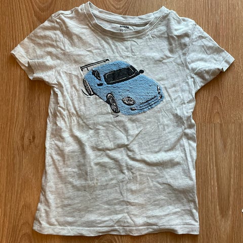 Vaaleansininen siisti autopaita. Koko 5-6 v/59 cm.