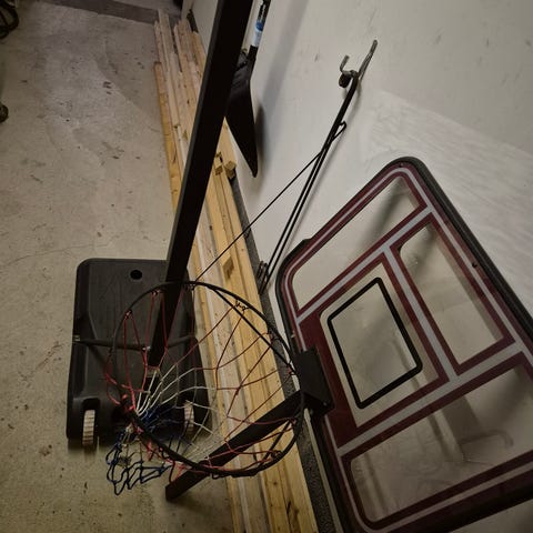 Hyväkuntoinen säädettävä koripallotelinen, 160-210cm. Säiliön korkki puuttuu muuten hyvässä kunnossa. Nouto Lystimäki