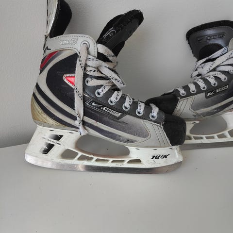 Luistimet, koko 37. Väri valkoinen. Perinteinen korkeavartinen malli, jossa nauhakiinnitys.
