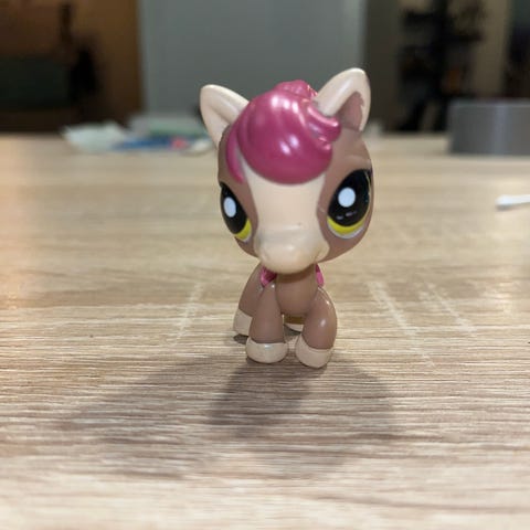 Littlest Pet Shop hevoshahmo, pieni lelufiguuri. Musta runko, vaaleanlila harja ja häntä sekä vaaleanlilat silmät ja kaviot. Sopii keräilyyn ja mielikuvitusleikkeihin muiden Littlest Pet Shop -hahmojen kanssa.