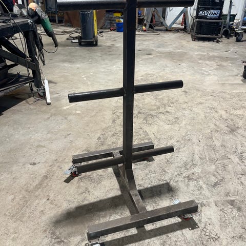 Voimaharjoitteluteline levytangoilla ja painolevyillä
