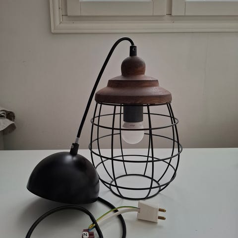 Koristeena roikkunut, ei koskaan käytössä ollut Lucide chimp valaisin, E27, maks. 60W, musta-kulta. Myynnissä edelleen ainakin K-raudassa.