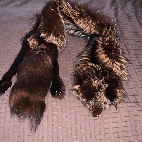 Upea valkoinen turkispuuhka. Kokonaispituus 240cm. Kuva ei tee oikeutta sen kauneudelle.
