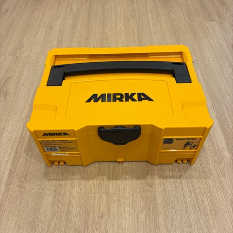 Mirka DEROS 5650CV työkalulaukku. Kova muovilaukku, jossa tilaa Mirka DEROS 5650CV -hiomakoneelle ja tarvikkeille. Laukun kannen sisäpuolella on ohje- ja infopainatus työkalun käytöstä. Soveltuu koneen säilytykseen ja kuljettamiseen sekä hiomatarvikkeiden järjestämiseen. Väri keltainen, kantokahva yläosassa. Saa pinottua toisen Mirka-työkalulaatikon kanssa.
