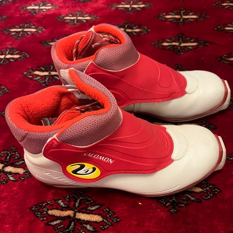 Salomon hiihtomonot SNS. Vajaan viikon lomalla käytössä olleet ja hyväksi havaitut, sitten jääneet kenkäkaapin perukoille. Kunnossa ei huomautettavaa. Kokolapussa 45 1/3, pohjallinen 29 cm., käytetty irtopohjallisia eli monoissa uudenveroiset originaalipohjalliset. Tuoksuttomat. Nouto Kampin seudulta.
