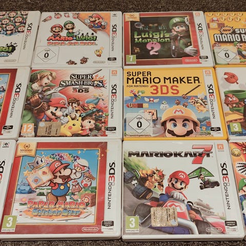 Tyhjät kotelot Luigi's Mansion 2 ja New Super Mario Bros 2 3DS:lle (nämä saa ilmaiseksi mukaan, jos haluaa)