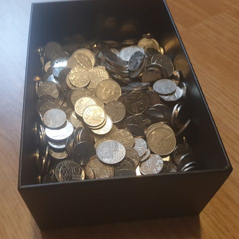 Tekoäly arvioi, että rahoja pullossa olisi noin 900 kpl - en lähde tarkistuslaskemaan.