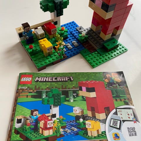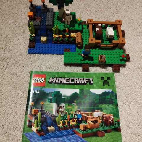 Myydään Lego Minecraft 21153 Villafarmi rakennussarja. Mukana ohjekirja. Yksi vihreä pala (371028 kuva) korvattu harmaalla.