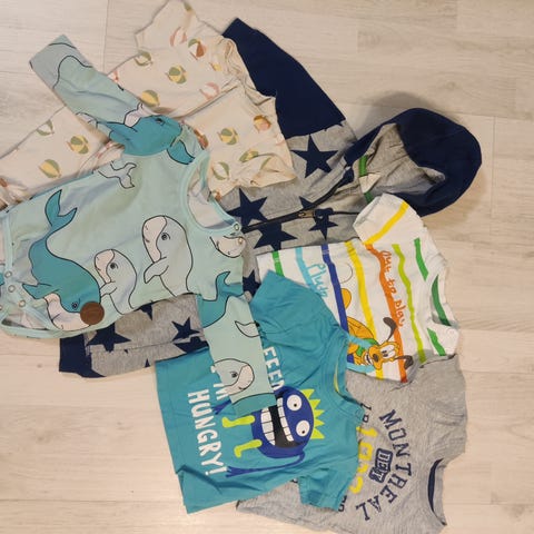 Hyvä kuntoisia vaatteita koossa 62-80cm, löytyy housuja, bodeja, paitoja, mekkoja, yökkäreitä, jumpsuitteja, 2 kpl kesähattuja, adidaksen ulkoilu setti ja paksumpi fleecepuku.
