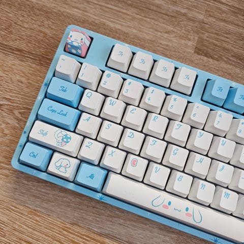 Akko Cinnamoroll 3068 mekaaninen näppäimistö. Siistissä kunnossa ja moitteettomasti toimiva.