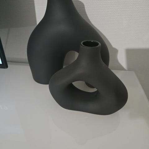 Hm Home:sta ostettu maljakko ja kynttiläjalka samasta sarjasta. Värissä luonnonvalkoinen/vaalea beige.