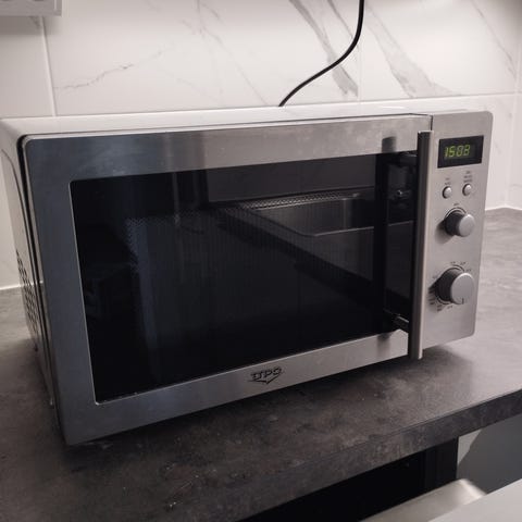 Kenwood mikroaaltouuni musta. Vapaasti pöydälle sijoitettava malli, jossa on mekaaniset säätimet tehotasoille ja ajastukselle. Etupuolella on lasinen luukku ja metallinen kahva. Sisällä on pyörivä lasilautanen tasaisen lämmityksen varmistamiseksi. Sopii ruoan lämmittämiseen ja sulattamiseen kotikeittiössä.