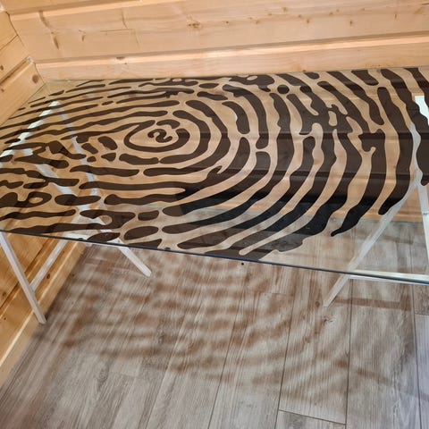 Kohteena vain lasipöytä, muu kalustus ja somistus ei kuulu kauppaan.