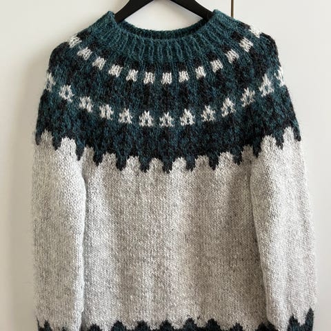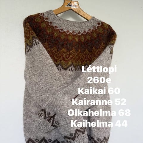 Myyntiin käyttämättä jäänyt islantilainen villapaita, itse tehty. 100% villaa, on paksu ja lämmin. Menee hyvin myös takin päälle. Koko vastaa n L kokoa, alla mittoja.