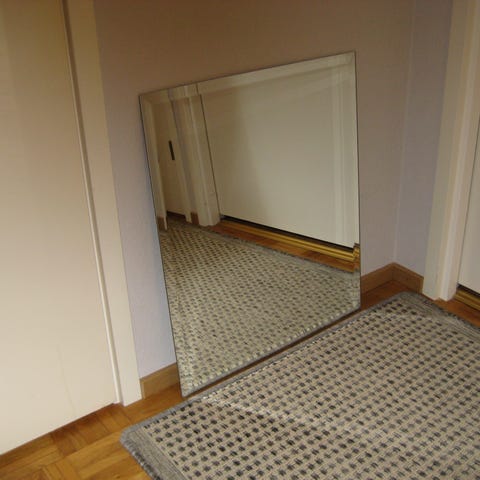 Seinä peili. Jossa myös naulakko ja pieni hylly. Pientä kuluma jälkeä maalipinnan. 60c38