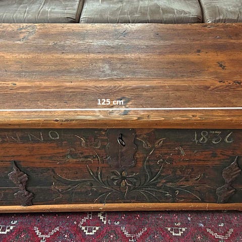 Puinen tummanruskea sohvapöytä. Pöytä on neliönmuotoinen ja matala, sopii olohuoneen sohvapöydäksi. Pinta on lakattua puuta, jossa näkyy käytön jälkiä , jotka on mahdollista helposti entisöidä . Mitat 100cm / sivu , korkeus matalampi,se on mitoitukseltaan sohvan eteen sopiva. Soveltuu esimerkiksi olohuoneen pöydäksi tai säilytys tilaksi. Arkussa ollut petivaatteita.Arkku aukeaa saranoillaan etukannesta. Säilytetty lämpimässä sisätiloissa .