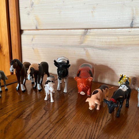 Schleich eläinfiguurit muoviset. Pakkaukseen kuuluu kolme erilaista eläinhahmoa: biisoni, hirvieläin ja koira. Figuurit ovat kovaa muovia ja yksityiskohtaisesti muotoiltuja. Sopivat leikkeihin sekä kokoelmiin ja eläinaiheisiin leikkeihin.