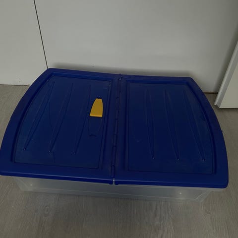 Musta säilytyslaatikko Ikea Vardö, jossa on pyörät pohjassa. Laatikossa on irrotettava tai avattava kangaskansi, joka kiinnittyy neppareilla. Soveltuu esimerkiksi vaatteiden, kenkien tai muiden tavaroiden säilytykseen sängyn alla tai kaapissa.