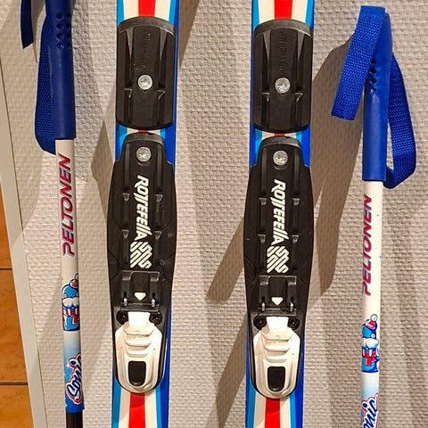 Tuollainen lasten suksipaketti jouten. Monot kokoa 32, sisämitta n.20cm. Sukset 110cm. Sauvat 80cm. nnn sidetyyppi. Myydään vain koko pakettina. Ypäjältä löytyvät