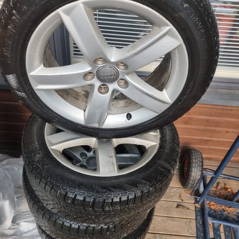 Hyväkuntoiset Audin alumiinivanteet lähes uusilla n.2000km ajetuilla nastarenkailla. Hinta tarjoa