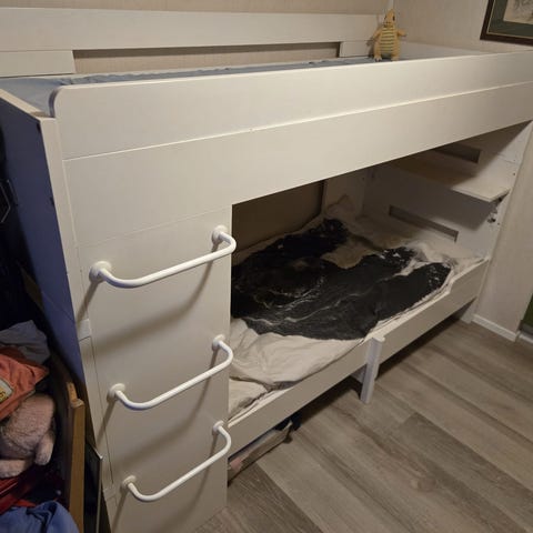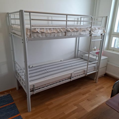 Valkoinen Muurame Jungmanni kerrossänky ja alla laatikosto. Hyväkuntoinen