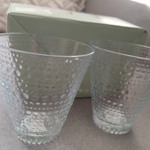 Iittala Kastehelmi juomalasit, tilavuus 30 cl, väri kirkas. Pakkauksessa kaksi lasia. Lasit on valmistettu lasista ja niissä on Kastehelmi-sarjalle tyypillinen kohokuvioitu pinta. Soveltuvat esimerkiksi veden, mehun tai muiden kylmien juomien tarjoiluun arki- ja juhlakäyttöön. Uudet! Laput kiinni ja laatikko löytyy.