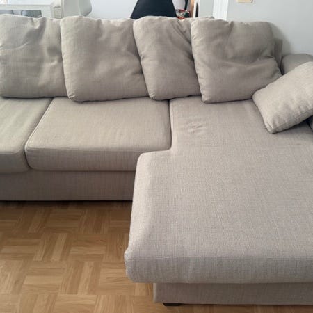 Viime kesänä pesty tekstiilipesurilla, tämän jälkeen tullut pieniä tahroja, pesu jää ostajalle.