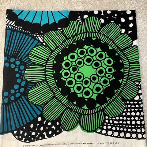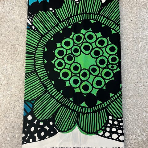 Marimekon hyväkuntoinen huhuli-kuosinen kankaan pala.