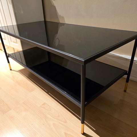 Itselle ylimääräiseksi jäänyt lasinen sohvapöytä. Mitat 115x55x37cm. Levy karkaistua lasia. Nouto Vaasan keskustasta.