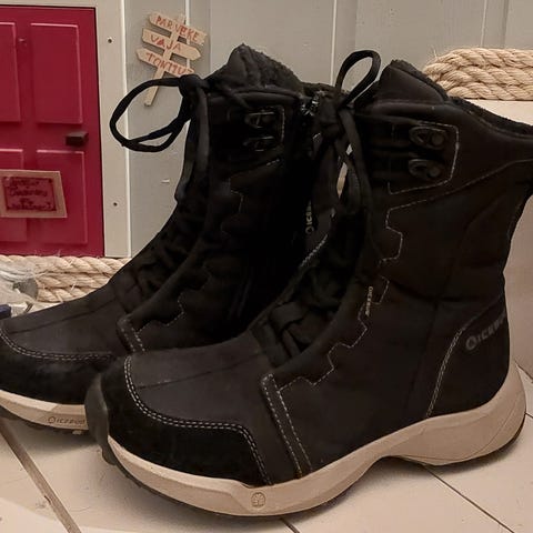 Varrelliset nastakengät. Vähän rajumassa käytössä olleet. Nastat paikallaan ja kunnossa. Vasemman kengän sisäsyrjässä nirhauma päällikankaassa ja kannassa nastanjäljet, kun otettu jalasta pois toiseen kenkään tukien. Hyvät kengät kuitenkin vielä. Vetskari sivulla helpottaa jalkaan laittoa. Sisämitta 23. Hp. 30/järkevä tarjous