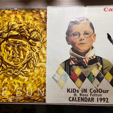 Agfa seinäkalenterit useilta vuosilta, muun muassa 1980-, 1988-, 1991- ja 1994-vuosikalentereita. Kalentereissa on valokuva- ja taidekuvitusta, kuten arkkitehtuuria, maisemia ja henkilökuvia. Sopivat esimerkiksi kokoelmiin, rekvisiittakäyttöön tai askarteluun, jossa tarvitaan aikakauden kuvitusta ja päivämääriä.