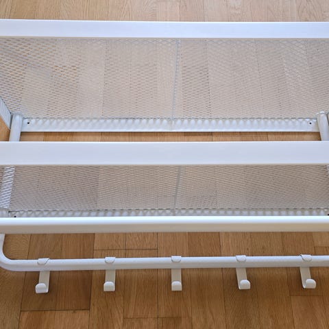 Ikea mackapär vaaterekki, valkoista metallia. Sopii vaatteiden ripustamiseen esimerkiksi makuuhuoneessa, eteisessä tai vaatehuoneessa. Rakenne on avoin, joten vaatteet ovat helposti saatavilla.